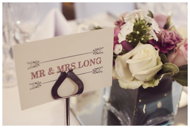 Our wedding favours were pink Breast Cancer Care pins in celebration of my grandmother {who has had the disease twice in 12 years}, and silver British Heart Foundation pins in memory of Matt's mum, who passed away from a heart complaint. We put each favour in a personalised card bag, which also doubled as a place setting for each guest.