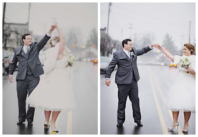 This incredible winter wedding is proof you can organise a fabulous big day in under a month! Keri and Bill originally planned to marrry in June, but they decided to bring all their family together for the holidays and celebrate both happy occasions. I've fallen for the gorgeous misty moodiness of these lovely pictures by Amy Carroll, and all the charming details. Scroll down for classic winter wedding inspiration, including DIY felt pom-poms and ring-pillow, the owl cake topper, the ruffled cake and the particularly cute 'smitten' mitton-shaped favours. Also loving the silvery and while flower arrangements by Gail VanderLaan and Keri's 50's style mid-length dress, and furry stole. Shorter wedding dresses are so this season!